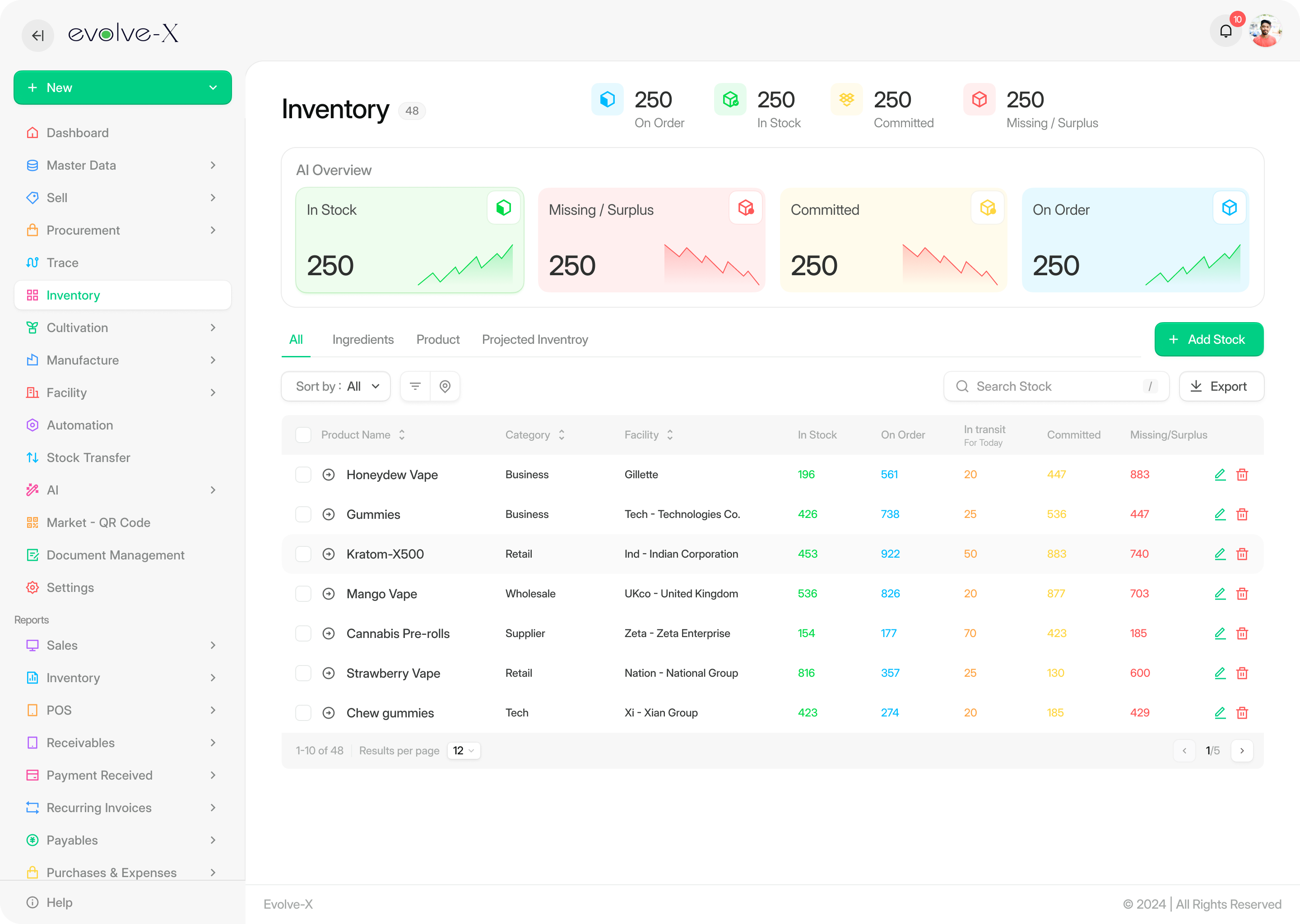 Create sales strategies, manage re-order point and keep your customers satisfied with EvolveX Inventory, a complete inventory control system.