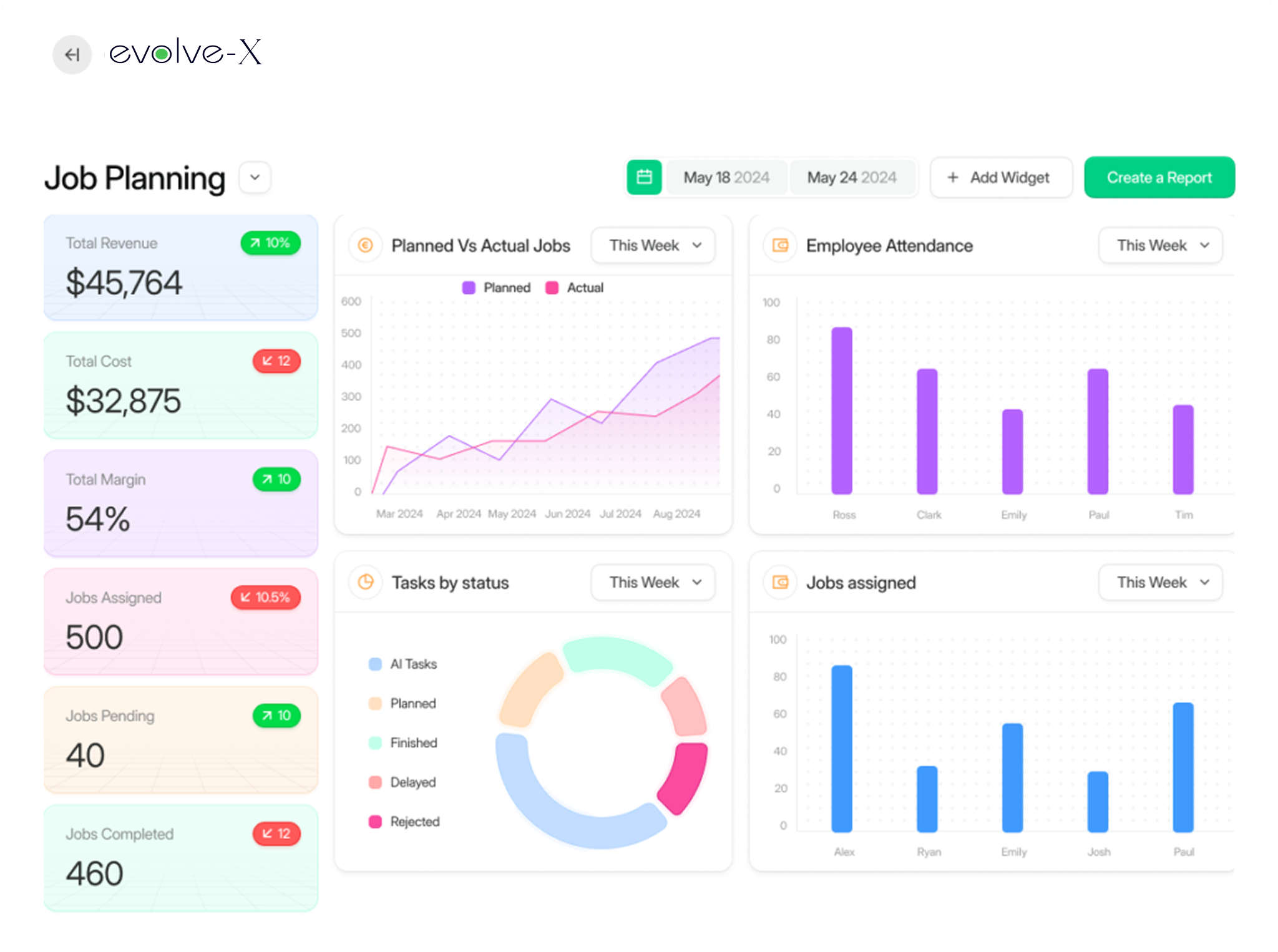 EvolveX provides detailed insights and real-time data to help you accurately track and manage job costs. This allows you to control expenses and ensure profitability.