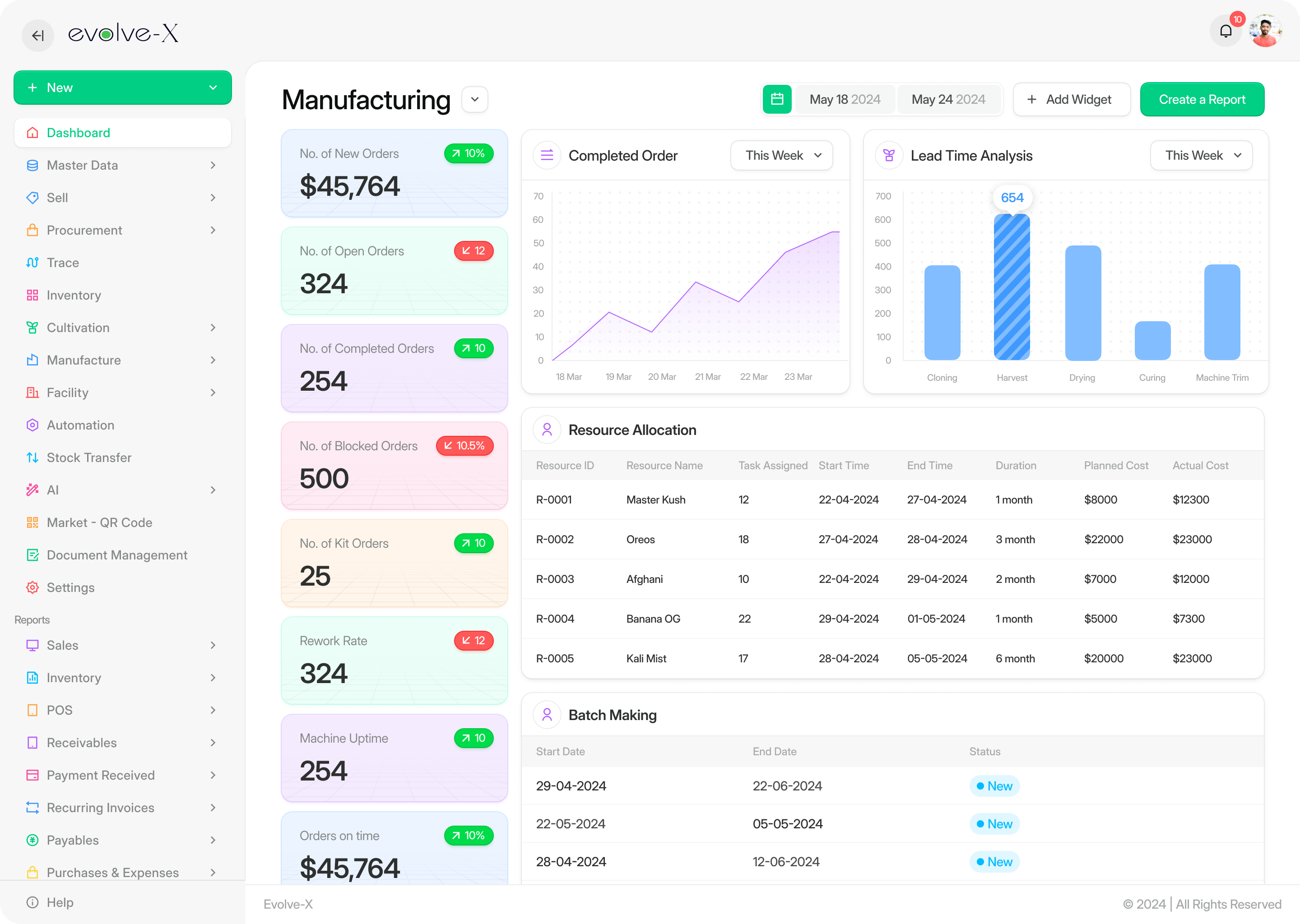 EvolveX offers tools for accurate production planning, including lead time prediction, capacity planning, and scheduling. This ensures that you can always promise realistic timelines to your customers.