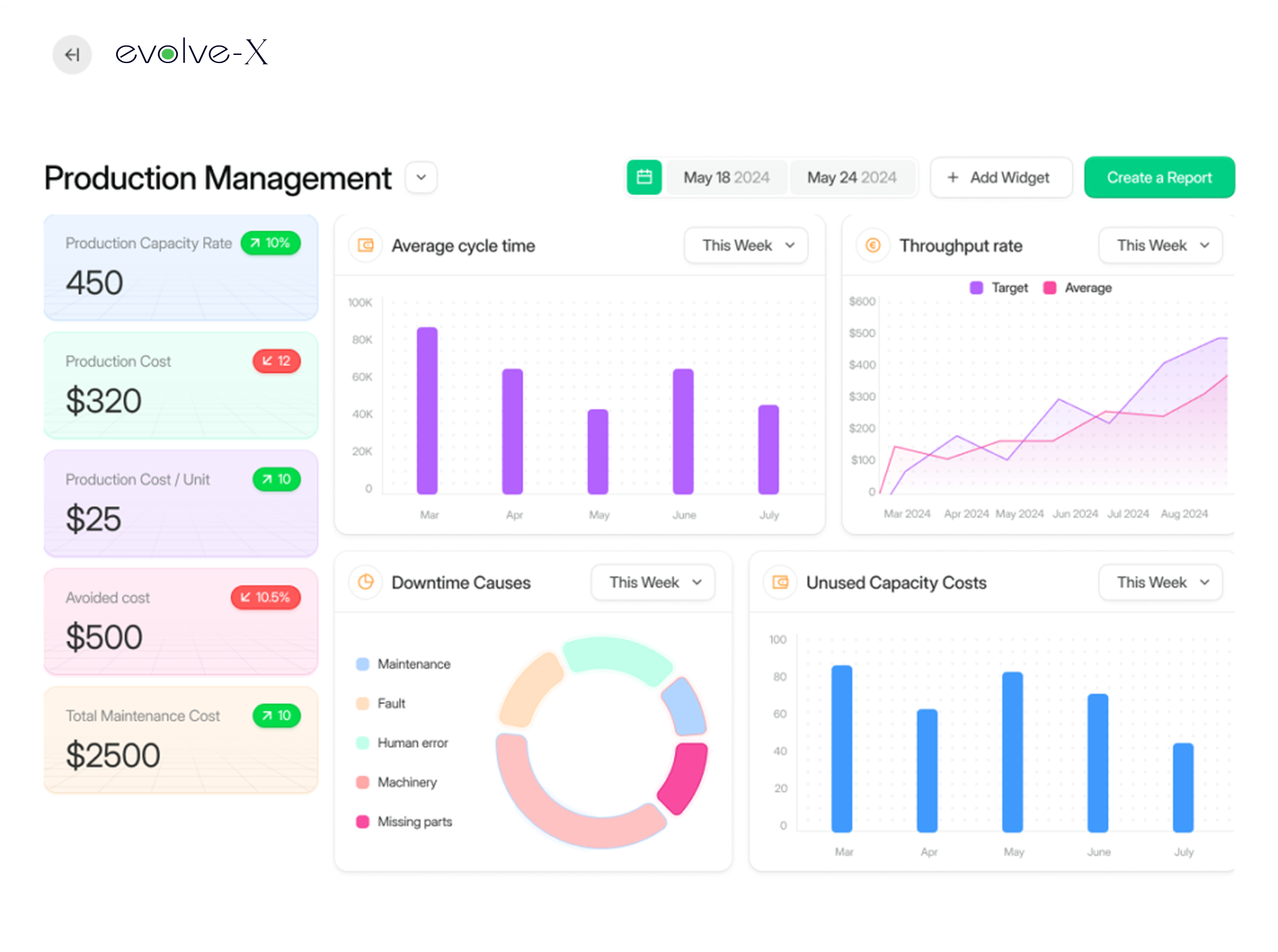 Real-time reporting with EvolveX allows you to make informed decisions quickly, improving overall productivity and responsiveness. It ensures you are always aware of your operations’ status and can address issues promptly.