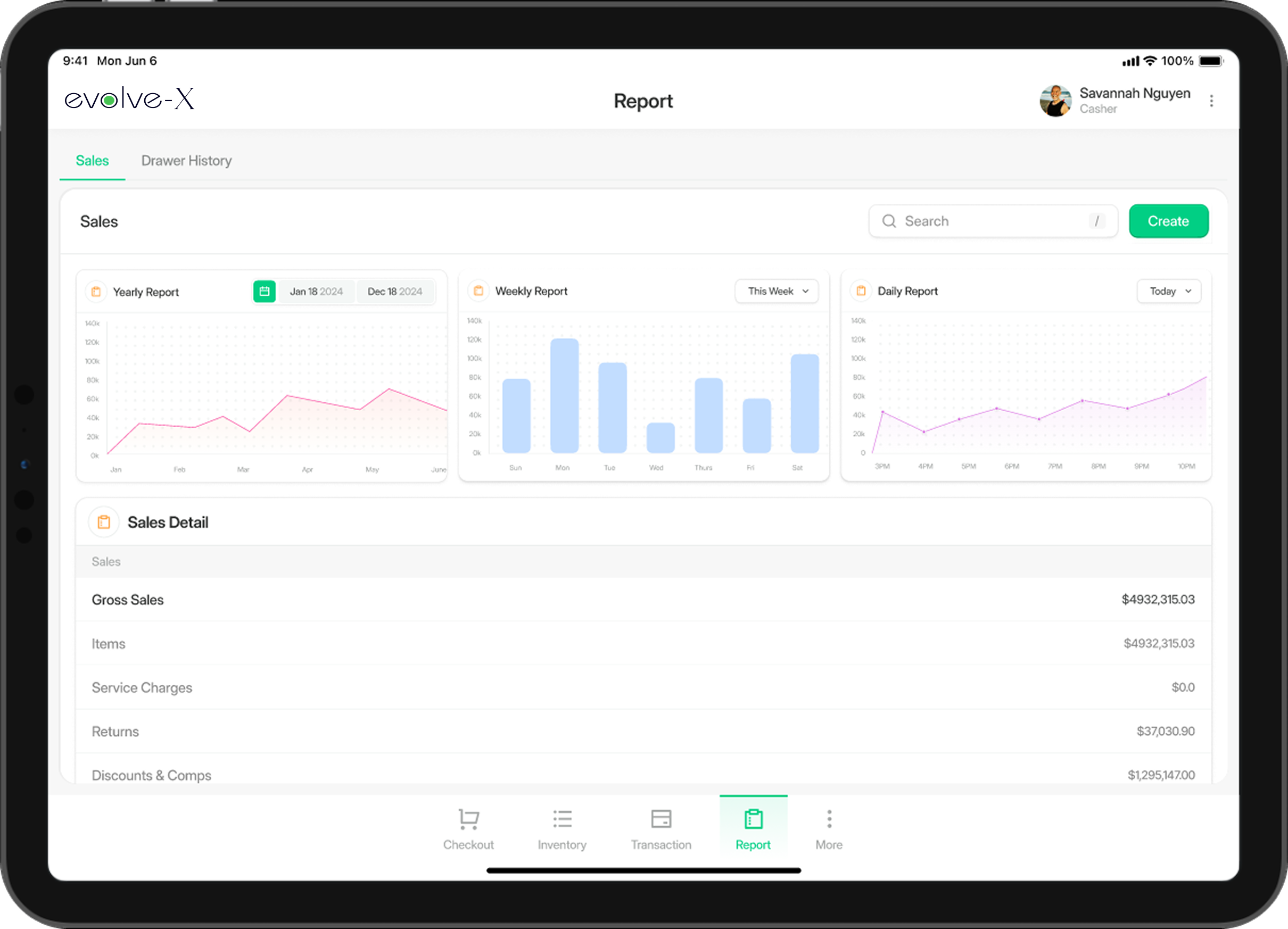 POS Software allows your business to accept payments from customers and keep track of sales. EvolveX Point of Sale software also helps you handle online orders and inventory, reach your customers and manage your team.