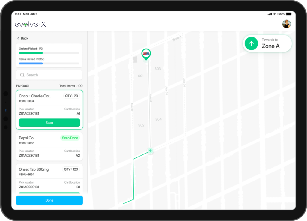 EvolveX WMS boosts inventory precision through advanced barcode scanning and real-time stock counting. Ensure every item is accurately tracked and managed, from shelf to shipment, for optimal efficiency.